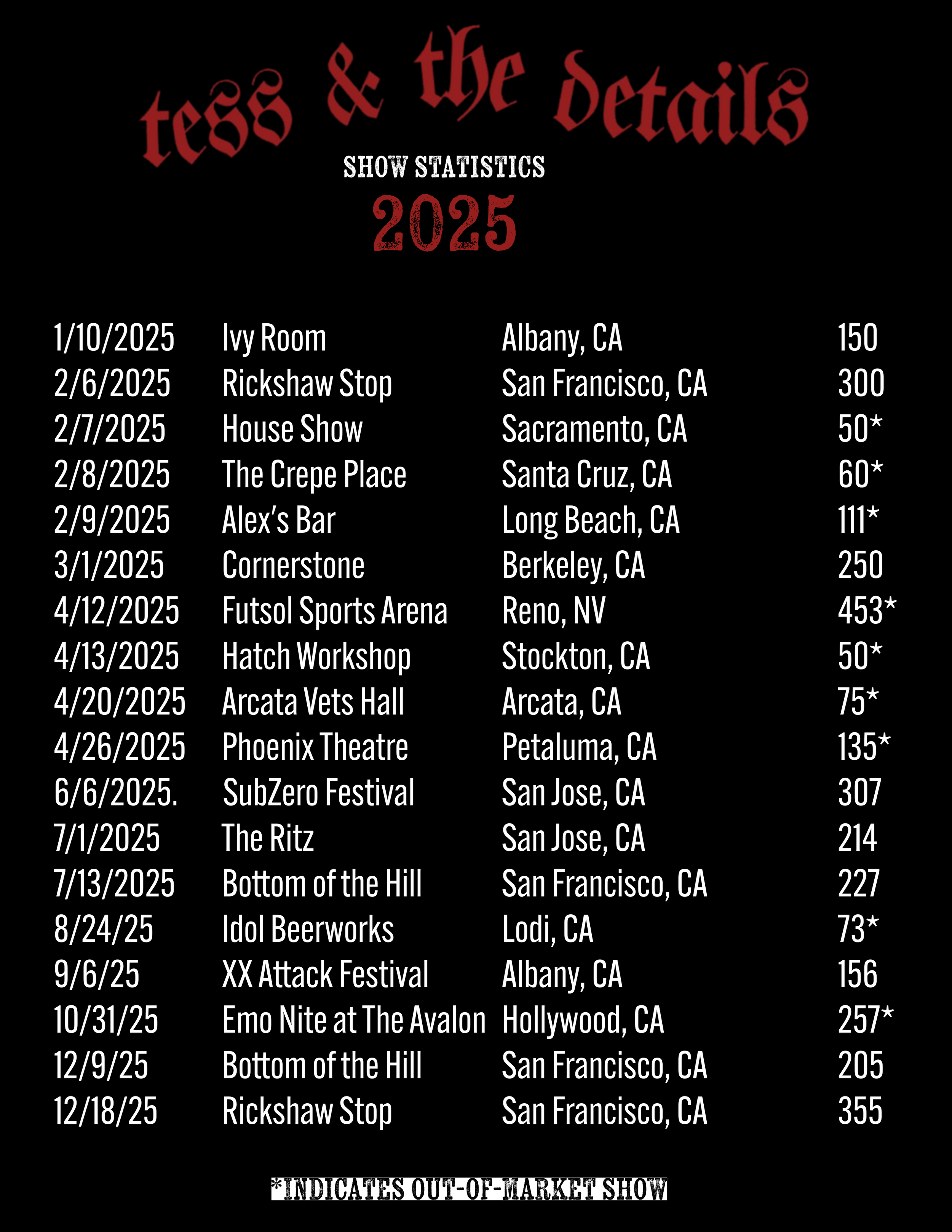 For more updates, news, and show announcements, follow the band on Instagram and Tik Tok @tessandthedetails.
